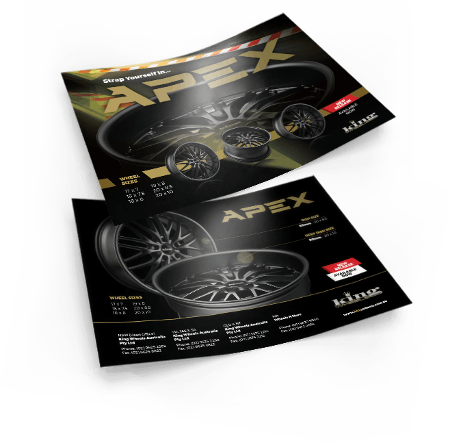 XDesigns Advertising have helped King Wheels Australia remain and maintain industry leading innovation and style with a professional compliment of Marketing Point-of-Sale material backed up with online campaigns. I have had the pleasure of personally dealing with both Wendy and Xabier and have found their professionalism, efficiency and communication second to none.